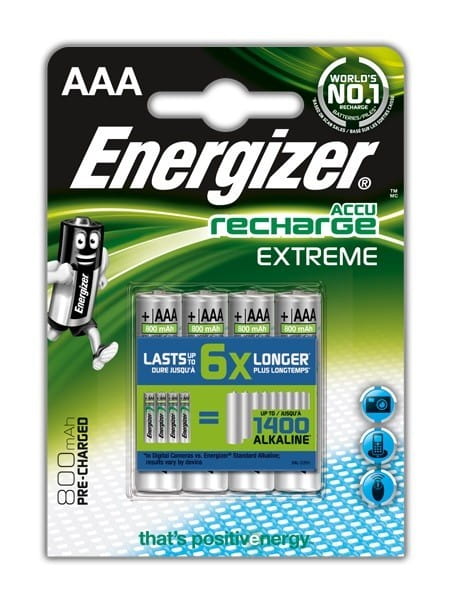 Naładowany akumulatorek Energizer EXTREME pozostawiony nieużywany na 12 miesięcy zachowuje aż 80% swojej początkowej pojemności i może być używany w urządzeniach.